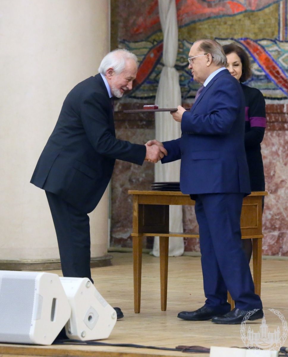 2019 г. Ректор МГУ В.А. Садовничий поздравляет А.Б. Рубина со званием лауреата премии имени М.В.Ломоносова за педагогическую деятельность